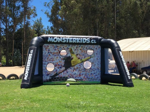 Arriendo arco de fútbol inflable con puntería, perfecto para competencias y actividades recreativas en eventos, colegios, ferias y fiestas. Incluye estructura inflable resistente, con orificios señalizados que otorgan puntajes según la precisión del tiro. Ideal para todas las edades, fomentando la puntería y la diversión.