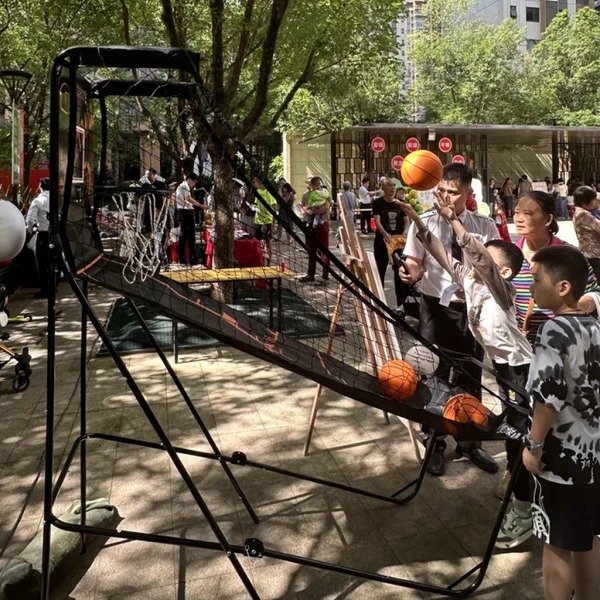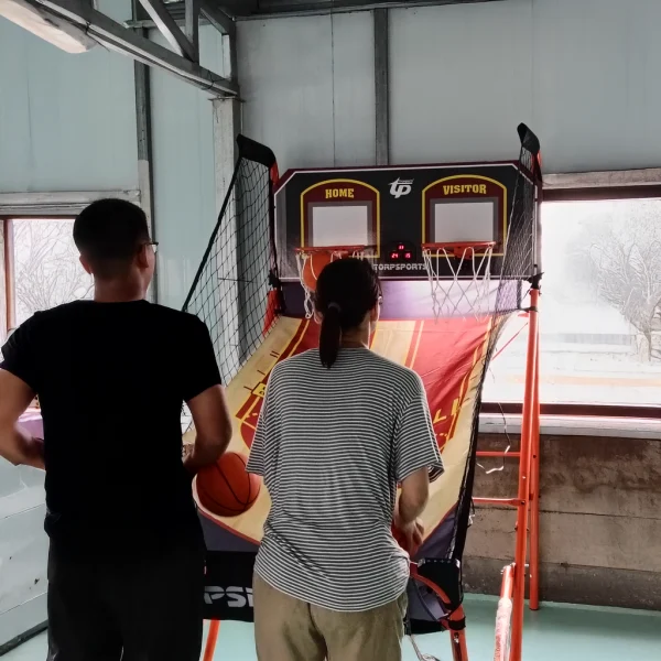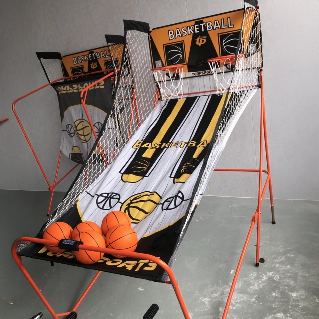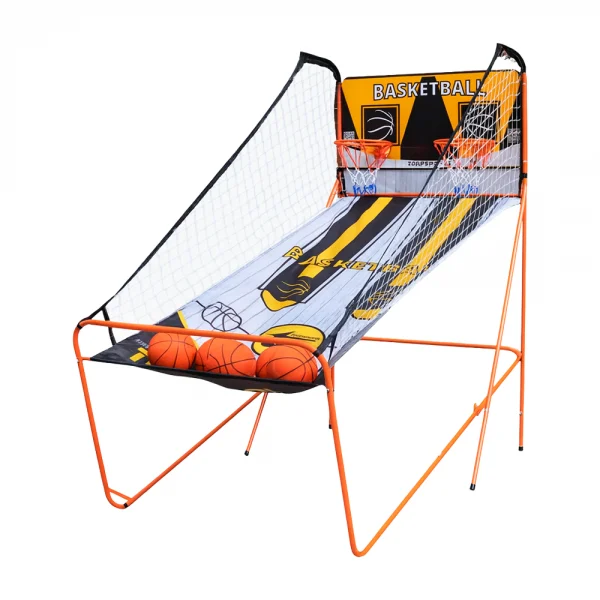 Arriendo juego de basketball doble, ideal para competencias y diversión en cualquier evento. Incluye estructura metálica resistente, dos aros, red de contención y pelotas. Perfecto para fiestas, colegios, ferias o actividades corporativas, asegurando entretenimiento para todas las edades.