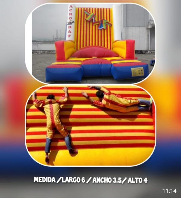 También conocido como: pared loca, pared de velcro, inflable pega mosca, juego inflable de adherencia.